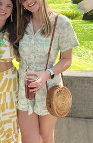 I used a spot in my membership to hold onto this romper for a couple months before I had that chance to wear it because I loved it that much! Very flattering since you can cinch the waist, breezy material.