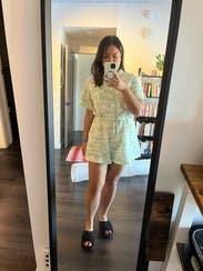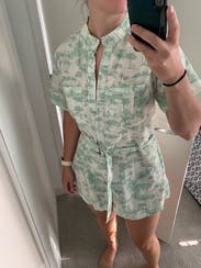 Brought this to Greece and it was the perfect thing to throw on for a casual dinner or lunch etc. got a lot of compliments on it. I could have sized up- it gave me some saggy butt vibes and the belt was way too loose.