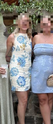 Boob tape needed!! Wore to my cousins bridal tea party bridal shower, very comfy and cute with heels. If you have a larger chest you definitely need tape with this one