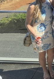 Was adorable to wear with my baby bump. The linen-like fit was great. Creases a little bit too easy, but it fit the beach-y vibe. It didn’t feel like it was too short, but I’m 5’0.