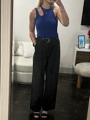 TEAM RTR REVIEW this tank is perfect for literally everything. i wore it several times from the park to the office to dinner. the cutout is tasteful and adds a fun detail plus the color is amazing!!