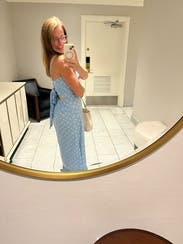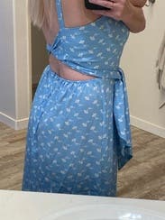 This is a dress you could almost wear for any occasion! Dressed up or down. Super cozy and lightweight, perfect for warm weather. You don't have to wear a bra because you can tie it as tight as you want! The bow in back is also SO cute!