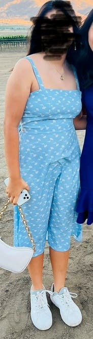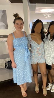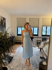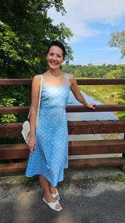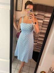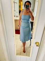 I wore this dress for a garden party and it was cute but didn't wow me. I wish I had sized down since, even with a tight knot in the back, the slaps were sliding down all night.