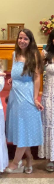 Just wow :) I rented for my son's baptism. The dress felt like a dream to wear. The blue was such a gorgeous color. After reading the reviews, I sized down to XS which ended up fitting just right. Although it's not shown in the picture, I just loved the back too-- open with a cute bow. Loved it!
