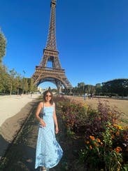 Wore this dress for graduation pics. I didn't love the look on me, but still a beautiful dress! Wasn't a fan of the bow in the back but the color was so much fun!