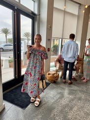I absolutely loved this dress. The material is so light and could honestly be worn as a beach cover up. I dressed it up to head to a Santa Barbara dinner and it was perfection. Absolutely loved it!