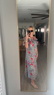 I love this dress! The print is fun, the fabric is quality and the dress is comfy! Super easy dress to throw on and look polished.