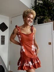 The La DoubleJ Mini Gingerbread Dress is a playful and feminine piece, featuring a flared skirt and a vibrant floral print. Pair it with strappy sandals or espadrilles for a relaxed yet polished daytime look.