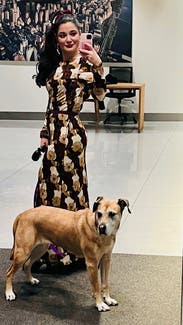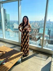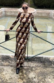 Loved this dress. So comfy, so chic. Would rent again, would consider buying. The pockets are a great touch. The open back perfect. Wore to art galleries where the artists said "that's incredible." A great dress.
