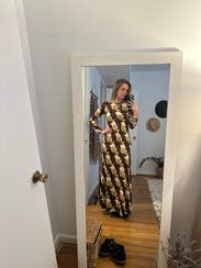 I loved this- the print is so cool and unexpected! It was a little long on me but very sleek- it’s a heavier viscose so wouldn’t have worked if it was any warmer out but it was perfect for a late May wedding.