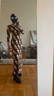 I wore this dress for fashion week events in Barcelona and it was incredible. It was so comfortable and definitely made a statement. Got so many compliments and seriously considered buying it after! I didn’t wear a bra due to the open back but there’s a lining to help prevent any indecent exposure.