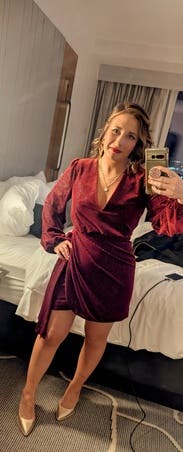 I loved how flattering this dress was. The material is so soft and it’s very comfortable. I got tons of compliments and it was great for a holiday party at a hotel.