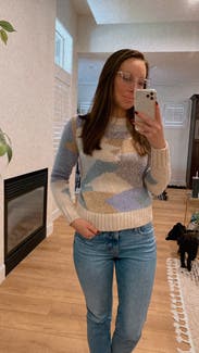 What a fun everyday sweater. I thought the colors were even brighter in person and even some sparkle woven in. Comfortable and soft, but not too heavy or itchy. Will probably rent again for spring!