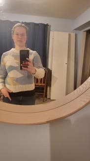 I enjoyed renting this sweater. True to size. Colors and glittery golden thread parts made this sweater more interesting. Can wear with jeans or skirt.