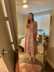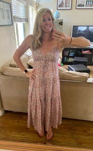 This dress is very pretty in person, but for a petite person it's more like a maxi dress, and the chest was a bit small if you have a larger bust.