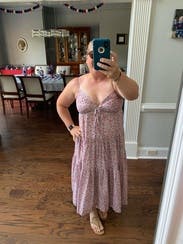 Loved the floral pattern, and the shimmer detail. Overall fit was true to size, but the top fit a little weird/small especially if you want to wear a bra. If you have perky, smallish boobs, it shouldn't be a problem ;). Perfect for a casual day dress, but you could also dress it up for a daytime event.