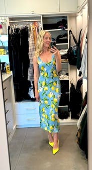 Obsessed with the gorgeously vibrant lemon 🍋 graphics and colors of this L’agence dress! 😍Pictures can’t do justice to the beautiful quality of silk fabric, comfortable but elegant fit of the dress (although straps were a tiny bit long on me, but easily fixed with fashion tape!), and sheer glamour and confidence you feel wearing it! Easy to add layers for transitional weather, perfect for warm weather days, and easy to style day/work like by throwing on a blazer and to night/date with accessories or footwear embellishments. Promise this dress is NO lemon, A Must Rent for my Everyday Chic Gals! ❤️🍋🫶🏼💛