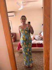Rented for babymoon, probably only needed to go up 1 size to Medium even with the belly, the top was falling down a bit.