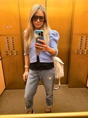 Such a polished look with jeans and dressed up. The shoulders are just the right amount of poof.
