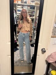 Note that this is a cropped top that also shows skin. Depending on your comfort level, you could opt to just wear a bra or wear a tank under to cover up a bit more. I will rent this again! I loved it! *wore it with DL1961 Zoie jeans