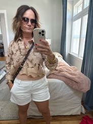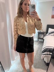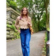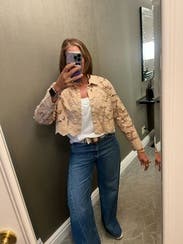 Very cropped and you need a tank under it, but I liked it to transition into Fall. Might wear it with white or black pants to dinner with friends for a more elevated look.