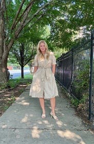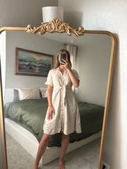 The tie at the waist makes if just perfect and levels it up from a plain linen dress.