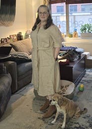 This dress was perfect for a hot day. Lovely linen fabric; it did wrinkle a bit.