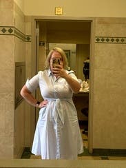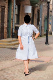 This dress gives me Belle from Beauty and the Beast vibes and I say that in the most positive way. Wore it for the "lifestyle" portion of a professional photo shoot and had so much fun! Downside like a lot of shirt dresses --- wrinkles! Even after starching, couldn't escape seatbelt and sitting wrinkles. Fortunately was not captured in my photoshoot. The 12 wasn't buttoning all the way in the bust, so I went with the 14. Didn't have the greatest arm mobility, but wasn't a huge deal for me.