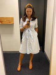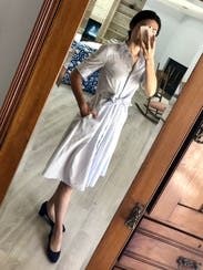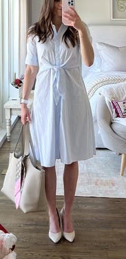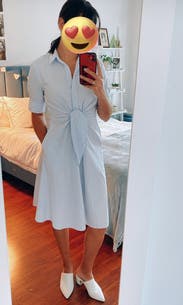 Loved this dress! Took the advice of past renters and wore a slip underneath. The fit was great, loved the pockets, and felt pulled together with just a few simple accessories. This is a great summer dress, timeless, and very flattering for an hourglass figure.