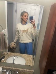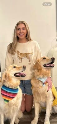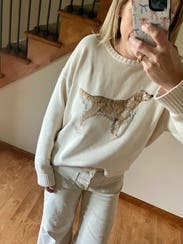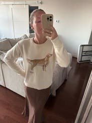 I saw this sweater on new arrivals and just had to rent it even tho I really didn’t need to. But I’m so glad I did because it’s amazing. Came new with tags and it fits perfectly - definitely true to size. Love the cream color with the golden retriever