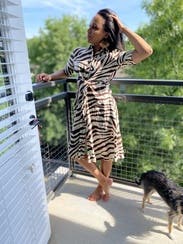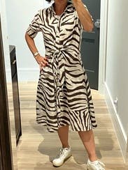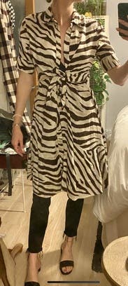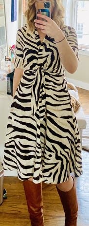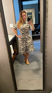 This dress fit well and felt comfortable. Plus I got some compliments at work. The brown zebra pattern just doesn't do it for me.