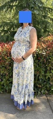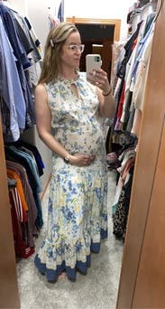 I just had one less event than I thought I did. Loved this! So sad I couldn't find a place to wear this. Loved this dress! This one was not maternity but I just ordered up to a 10 and it fit really well. I am 5'8 and 165 pre pregnancy. Currently 33 weeks pregnant and 190lbs.