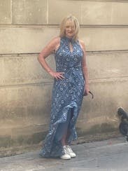I loved this dress and got so many compliments on it! It’s long and flowy and with lowish heels it still made me look taller than I am (5’6”).