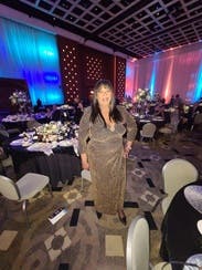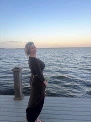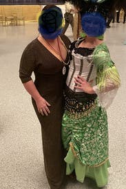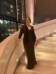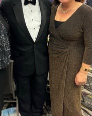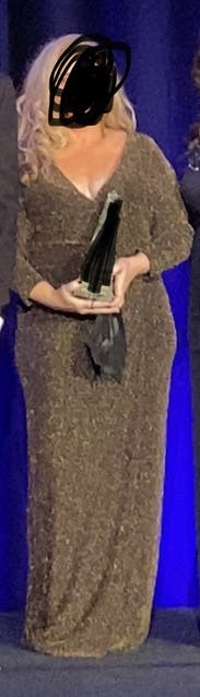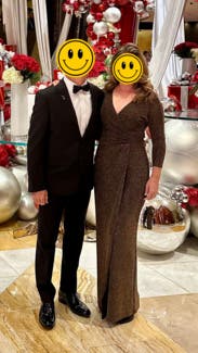 Rented this for mom to wear to the opera. Slimming and easy to wear. The only issue was the cleavage. You'd have to pin it OR, do what I did... use a (Covid) mask as a faux-cami to fill in the gap for pictures! Lolol!