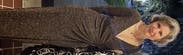 This dress is very flattering on a fuller figure. The material stretches nicely and gathers flatteringly at the midsection. The color is a bit more gold than black in-person.