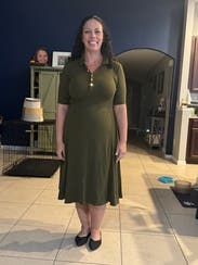 Such a comfortable material and incredibly flattering. I belted it to emphasize my waist.