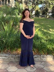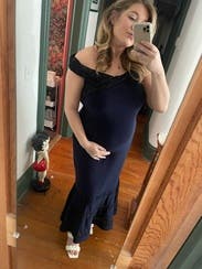 This dress is extremely comfortable and forgiving! I wore it to a black tie wedding 26 weeks pregnant. I could have sized up just once from pre-pregnancy size with this dress, but decided to wear the back-up additional size larger to allow more room in the chest/arms (only part of the dress that isn’t stretchy!). I definitely recommend!