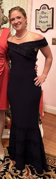 Lots of compliments on this one! Very sleek, elegant, simple dress for a formal holiday party. 12R was maybe a little loose, but it meant it was forgiving of my curves and I didn't need shapewear.