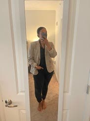 Great for warm weather “fall transition” look. Paired with a faux leather dress for a polished professional look. This blazer can be worn with many colors and pieces and I will definitely rent again!