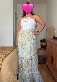 The white part of the dress is so flattering and the Maxi is such a gorgeous floral. Lightweight and very comfortable. I’d wear this on vacation or to a summer dinner party