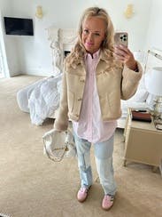 Love this jacket! The inside is super soft, which makes it feel incredibly warm. The neutral color is perfect because it literally matches everything in my wardrobe. The weight is just right for the changing weather, making it the ideal jacket for those later fall months. Highly recommend!