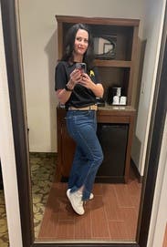 This was my second rental of these jeans and the pair I got seemed smaller and shorter than the first pair. May have shrunk, or I'm just not remembering. But fun style with a bit of a flair. Super comfortable and they stretch nicely through the day. I want to try the next size up next time.