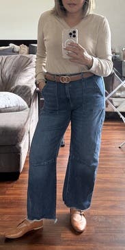 I love these jeans so much! They are soft, extremely comfortable, great wash for work and so very flattering. I am only 5’3” and the length is perfect. Renting these was such a fun way to try the barrel leg trend and I’m glad I did!