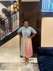 I had been waiting for this one to come back in stock so I could rent it! It's beautiful and so colorful. I wore it with a madewell white top for my daughter's first birthday.