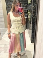 Wore it so many times and eventually bought it! Perfect spring/summer skirt and loved the mix of pastels with black piping. Wore it to work with sneakers, to wine country, on dates. Perfect and light weight for vacation packing. 10/10.