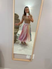 I wore this to a work meeting and it was great. It has an elastic waistband and it’s very flowy so it’s comfortable. The pastel tie dye effect was beautiful too.
