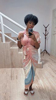 I wore this dress for Easter brunch and received so many compliments. The colors are stunning and it fit so comfortably. I was worried about the buttons pulling around my hip area but had no problem, even while sitting.