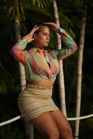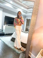 Really fun, colorful button down crop top. Fit perfect and didn’t look childish.