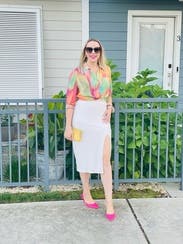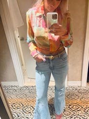 This is a great top for day to night transitions. The colors remind me of sherbet.