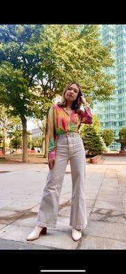 I love the colors of this top and probably would have kept it longer if the weather was warmer! It was a little weird to figure out how it’s meant to sit but once styled it became one of my favorite looks